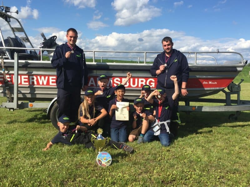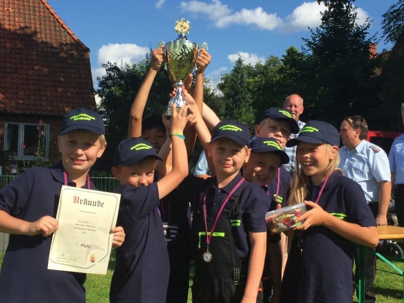 Foto 3 und 4: Die Kinderfeuerwehr Handorf nach der Siegerehrung
