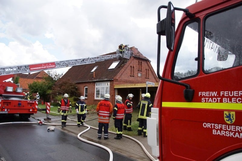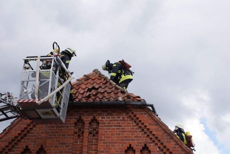 Die Leitstelle alarmierte nach dem Einsatzstichwort „B4-Dachstuhlbrand“ zwei Löschzüge und die Kommunikationsgruppe. Das Großaufgebot an Einsatzkräften hatte Erfolg: Der Blitzeinschlag verursachte einen Brand zwischen Dach und Innenverkleidung. Unter Atemschutz wurde die Verkleidung und das Dach geöffnet. Eine Brandausbreitung konnte so verhindert werden.