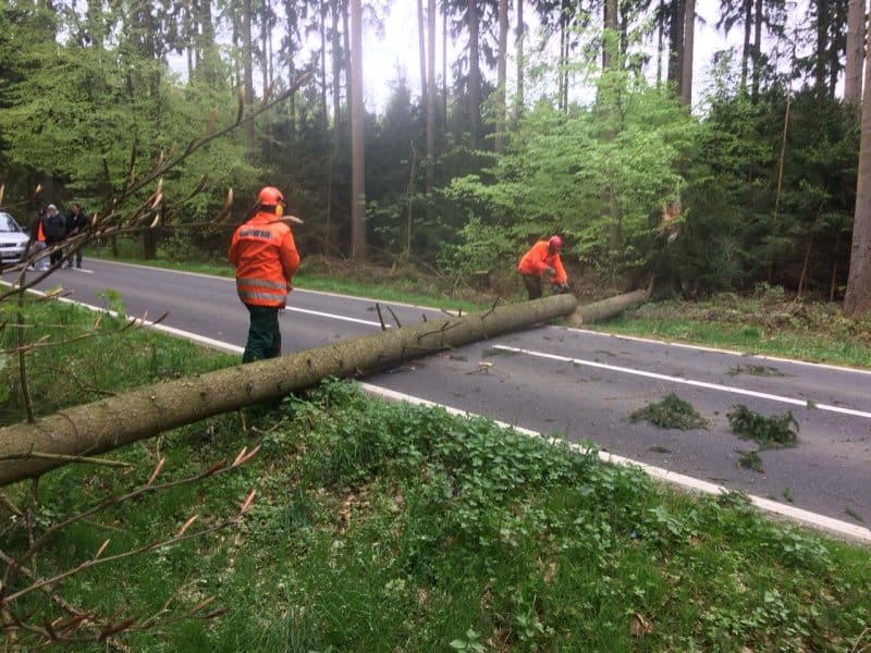 Straße geräumt, 2 Kettensägen, 7 Einsatzkräfte, 30 Minuten