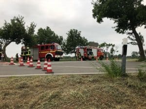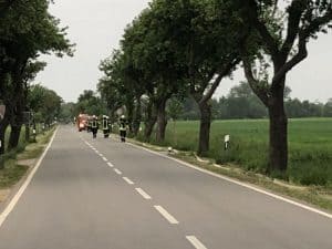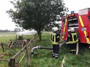 Der 4. Zug mit 35 Einsatzkräften der Feuerwehren Brackede, Radegast, Garlstorf und Wendewischübte am Donnerstag die Wasserförderung von Neu Brackede bis zum Hof Schröder an der K5.