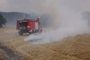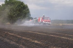 Mit Unterstützung des Landwirtes, mit Tanklöschfahrzeugen, Feuerpatschen und Wasserrucksäcken konnte die Ausbreitung gestoppt werden.