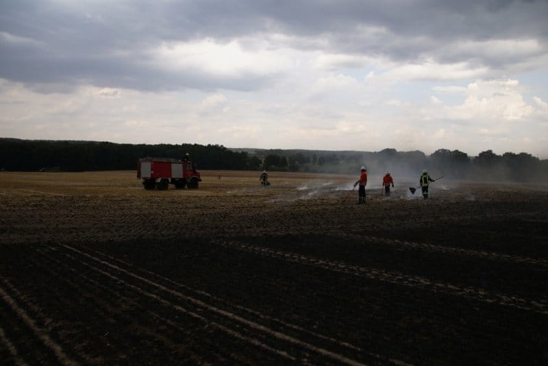 Mit Unterstützung des Landwirtes, mit Tanklöschfahrzeugen, Feuerpatschen und Wasserrucksäcken konnte die Ausbreitung gestoppt werden.