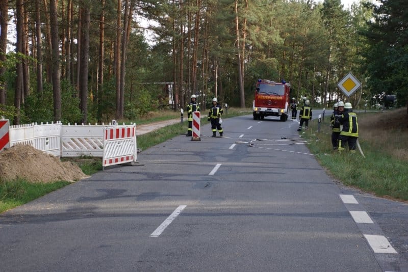 Die Feuerwehren Breetze und Bleckede haben die Schadstelle an der K35 abgesperrt.