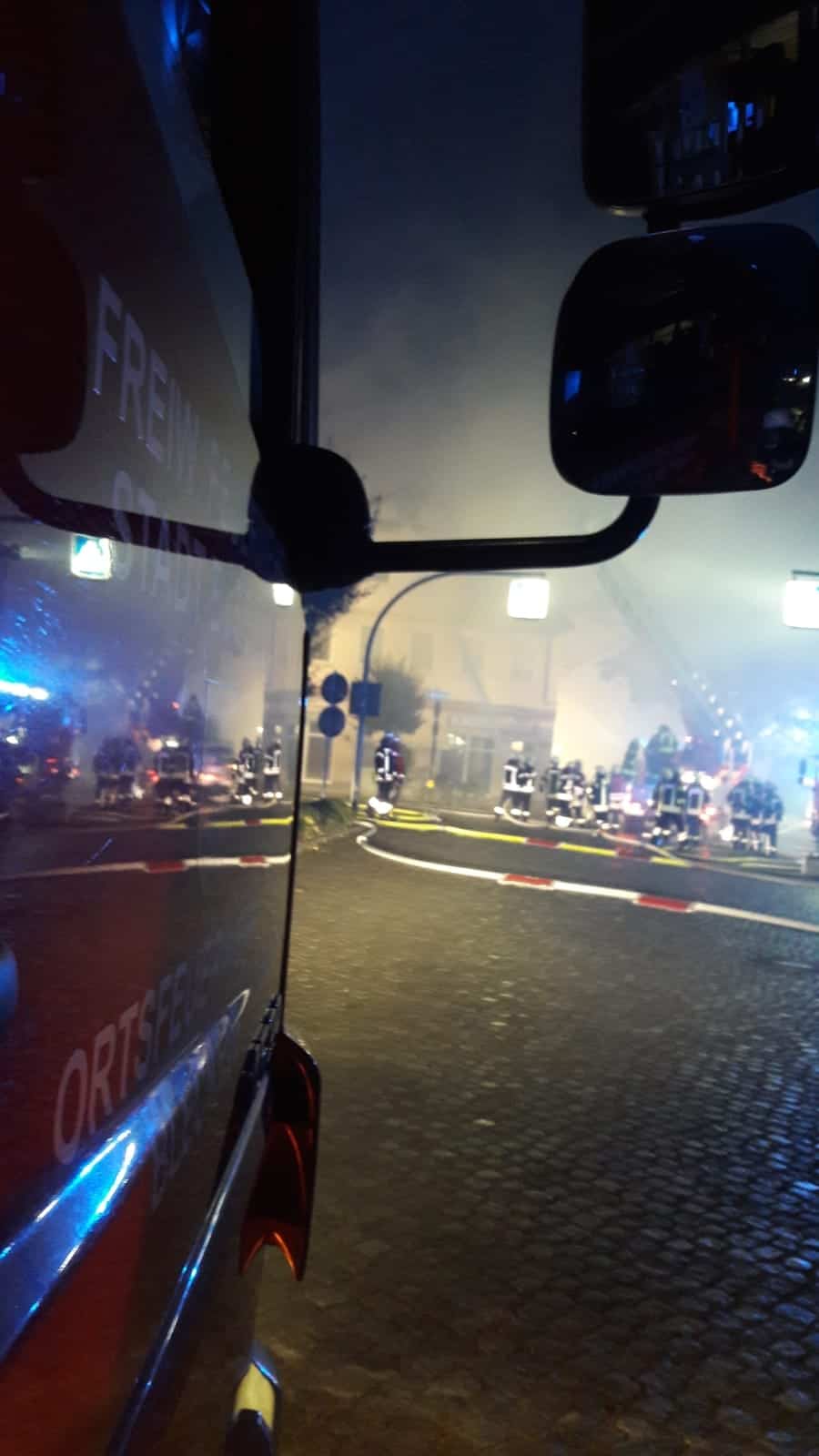 Die Drehleiter wurde zur überörtlichen Hilfe angefordert und rückte zusätzlich mit dem Tanklöschfahrzeug aus.