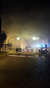 Ausnahmezustand herrschte in den Abend- und Nachtstunden zum 03.10.18 nach einem Großbrand in den Dannenberger Innenstadt. Aus bislang ungeklärter Ursache war es am 02.10. gegen 21:15 Uhr zu einem Feuer in einem Gebäudekomplex Am Markt – Dannenberger Innenstadt – gekommen. Aufgrund der Bebauung sowie der vorherrschenden Witterung dehnte sich das Feuer in Kürze massiv auf insgesamt drei zum Teil historische mehrstöckige Gebäude aus und entwickelte sich zum Vollbrand der jeweiligen Gebäude. Die Feuerwehren der Region sowie benachbarter Landkreise waren mit mehr als 350 eingesetzten Feuerwehrkräften im Großeinsatz und versuchten ein weiteres Übergreifen auf weitere angrenzende Gebäude zu verhindern. Die Löscharbeiten dauerten bis in die späten Nachtstunden an. Parallel sind Einsatzkräfte der Feuerwehr aktuell weiterhin vor Ort. Die brandbetroffenen Gebäude sind allesamt stark beschädigt und unbewohnbar. Der Sachschaden beläuft sich auf weit mehr als Euro Million Euro. Die Sperrungen im Innenstadtbereich dauern weiterhin an.
