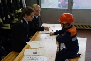 Zehn Jugendliche stellten sich der Prüfungskommission aus Jugendfeuerwehrwarten und Führungskräften der Stadt Bleckede. An acht Stationen musste Feuerwehrwissen und Allgemeinbildung unter Beweis gestellt werden.