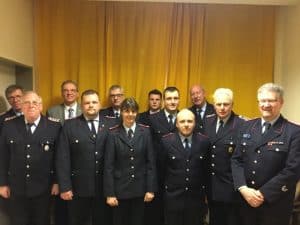 Ortsbrandmeister Friedhelm Hinrichs, Beauftragter der Altersabteilung Lothar Hensling, Bürgermeister Jens Böther, Jugendwart Andre Brück, Kassenwart Frank Luerßen (für 25 Jahre Mitgliedschaft geehrt), Geräterwartin Alexandra Hoyer, Stellv. Jugendwart Alex Breese, Gruppenführer Markus Wolter, Stellv. Geräterwart André Clement, Ortsvorsteher Wilhelm Kastens, Manfried Wolter (für 50 Jahre Mitgliedschaft geehrt), Stadtbrandmeister Joachim Meins