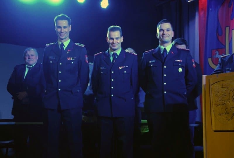 Foto 5, Beförderung zu Oberlöschmeistern, von links: Oliver Schmidt, Jens Albrecht und Henning Wanke