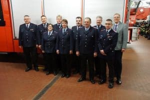 Stellv. Stadtbrandmeister Hermann Blanquett, Stefan Hoppe, Frauke Motylewski, Uwe Schulze, Barbara Foelske, Jürgen Wienke, Burkhard Popp, Stadtbrandmeister Joachim Meins, Jens Bonow und Bürgermeister Jens Böther (es fehlt Uwe Claus)