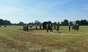 18:30 Uhr: Nachlöscharbeiten mit Kübelspritze durch die Feuerwehr Karze