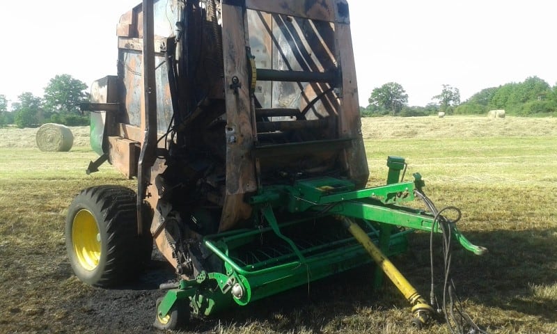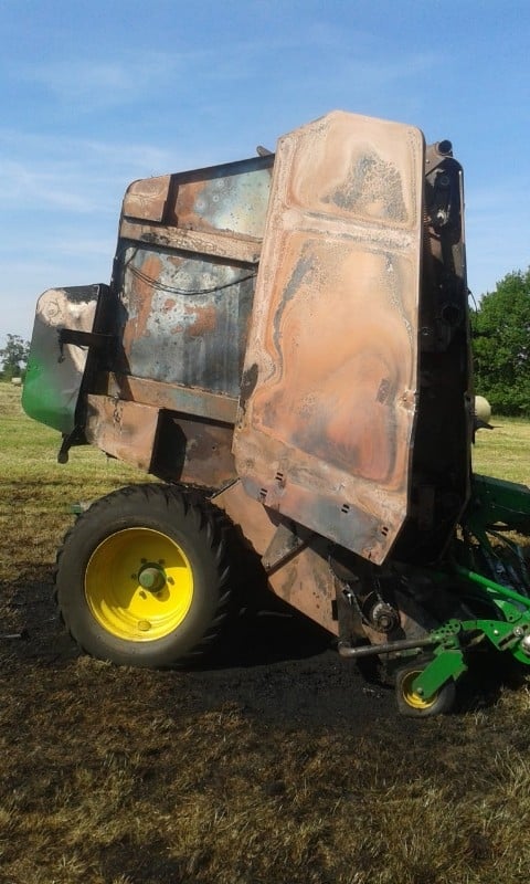 Brand einer Rundballenpresse und  kleinerer Grasflächen,