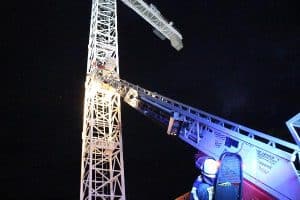 Für die drei Personen im Kran war der Entschluss schnell gefasst: die drei Verletzten wurden über die Drehleiter gerettet.