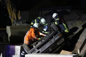 Der PKW wurde gegen weiteres Verrutschen gesichert und anschließend mittels Schere und Spreizer ein Zugang über die Fahrertür geschaffen. Darüber wurden die Personen aus dem Fahrzeug befreit.