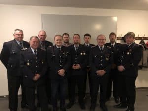 Stadtbrandmeister Hermann Blanquett, Ullrich Bockelmann, Stellv. Bürgermeister Herbert Beusch, Marc Lübberstedt, Moritz Surke, Heinz-Jürgen Bockelmann, David Rehfeld, Peter Grzyb, Marco Heinemann und Ortsbrandmeister Martin Rehfeld.