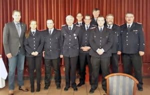 Bürgermeister Dennis Neumann, Anika Lüdemann, Marc Langhammer, Heinz Petersen, Jürgen Dethlof, Alexander Zeitel, Ortsbrandmeister Ralf Bullmann, Daniel Langhammer, Hartmut Müller, Stadtbrandmeister Hermann Blanquett
