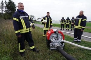 Das neue Gerät verfügt über einen Elektrostarter. Darüber freut sich besonders Stellv. Ortsbrandmeisterin Barbara Foelske: „Jetzt können auch die Frauen in der Feuerwehr mit der Pumpe arbeiten – mit dem alten Gerät war das starten des Motors die größte Hürde …“