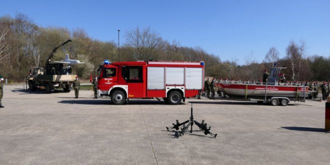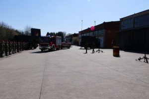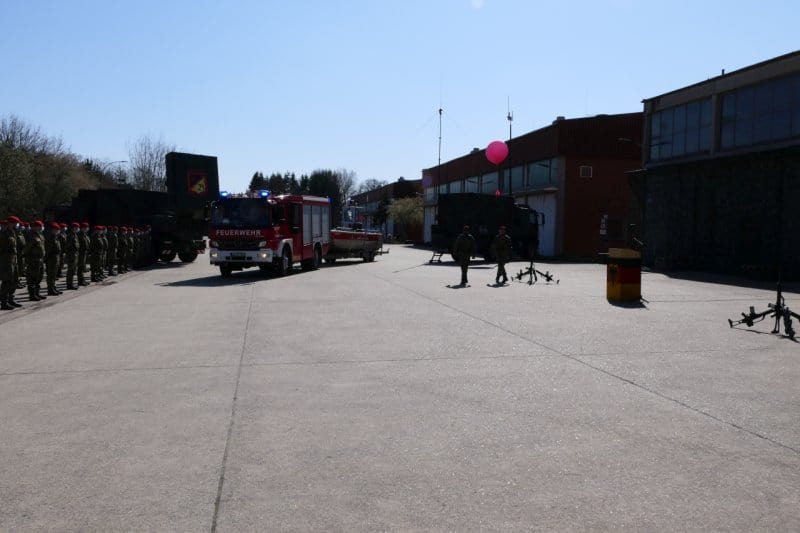 Nach der Kommandoübergabe wurde Major Wiencke von der Feuerwehr Ausgefahren – Vorbei an den Soldaten der 2. Batterie.