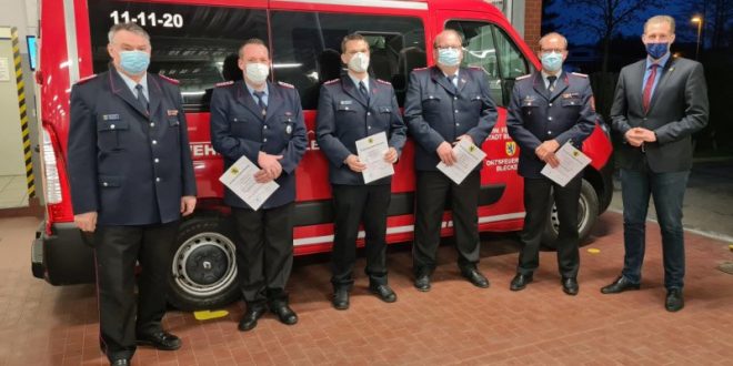 Neben aktuellen Themen wie die ab 08. Mai anstehende Impfung der Bleckeder Einsatzkräfte sowie Informationen zum Feuerwehrbedarfsplan und den anstehenden Bauprojekten gab es Ernennungsurkunden für die anwesenden Führungskräfte: