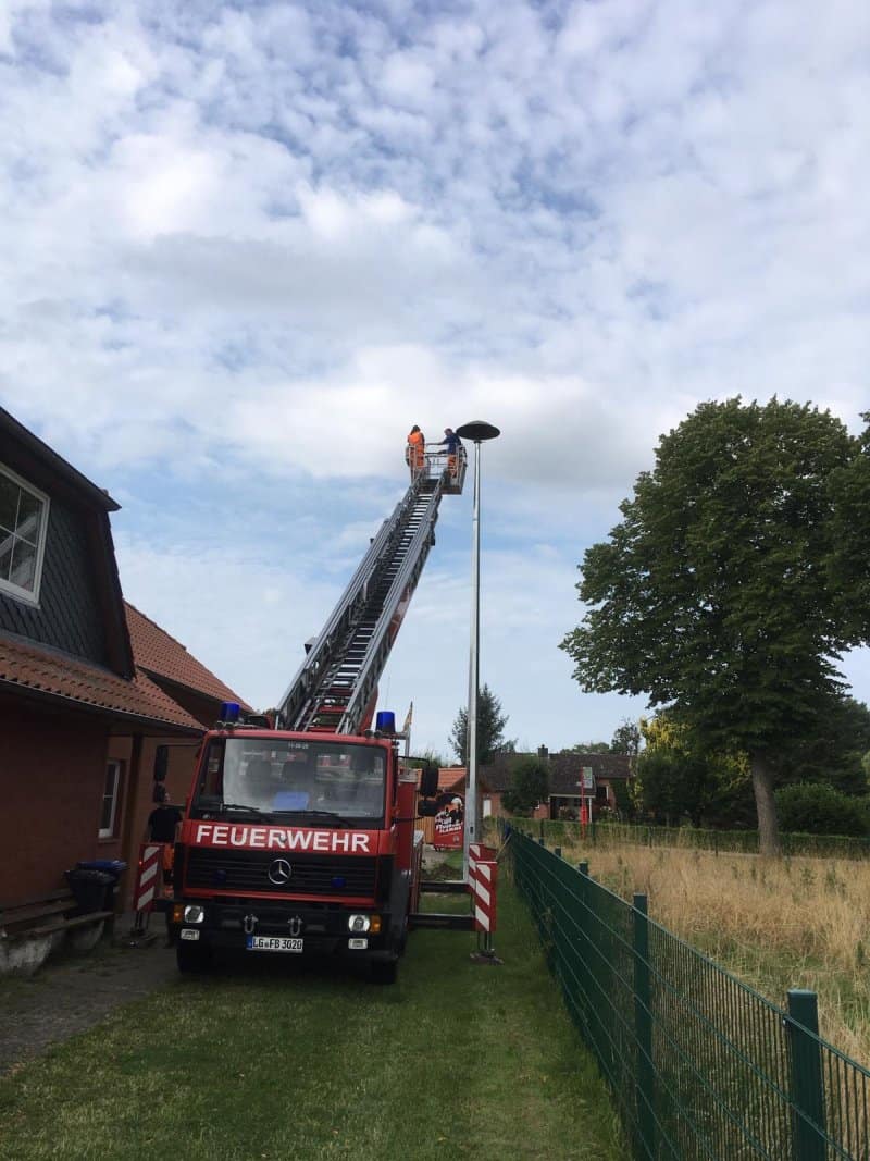 Da einige Mitarbeiter des Bauhofes ausgebildete Drehleitermaschinisten der Ortsfeuerwehr Bleckede sind, konnte hier problemlos auf vorhandene Ressourcen zurückgegriffen werden.