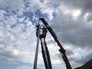Neben dem Kran war auch ein Hubsteiger erforderlich – oder eine Drehleiter.