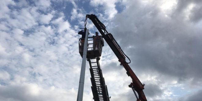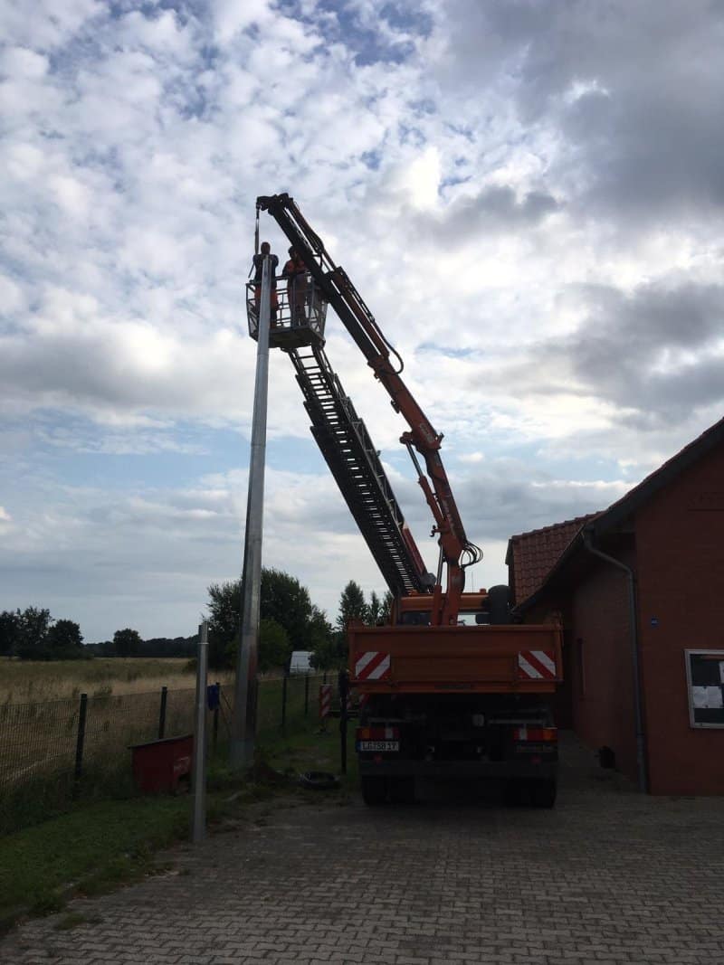 Am Donnerstag hat der Bauhof der Stadt Bleckede einen neuen Sirenenmast am Feuerwehrhaus in Wendewisch montiert.