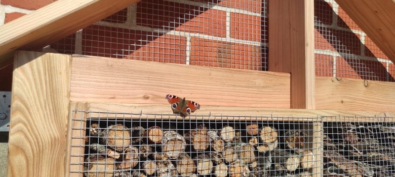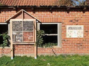 Die Kinderfeuerwehr der Elbmarschfeuerwehren hat heute in Radegast ein Insektenhotel aufgestellt – der erste Gast hat sich das Bauwerk bereits angeschaut.