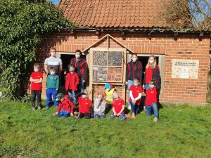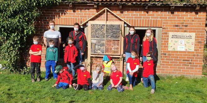 Kinderfeuerwehr der Elbmarschfeuerwehren stellt Insektenhotel auf