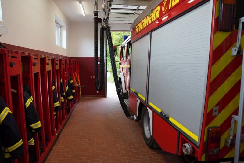 Foto 5: Fahrzeughalle Feuerwehr Barskamp – Anbau mit Abgasabsauganlage sowie Druckluft- und Batterieerhaltung am Löschgruppenfahrzeug