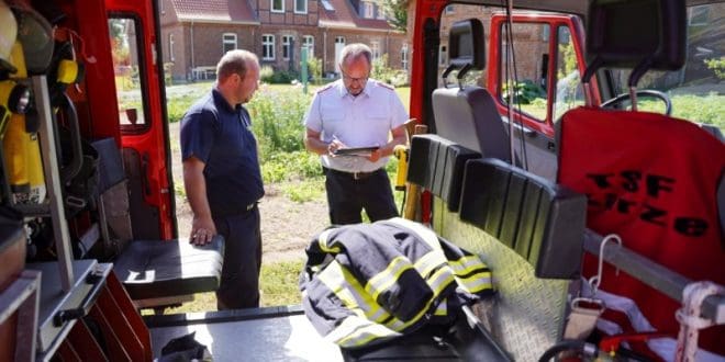 Fahrzeugappell – die Ortsbrandmeister der Bleckeder Ortsfeuerwehren überprüfen die Fahrzeuge: