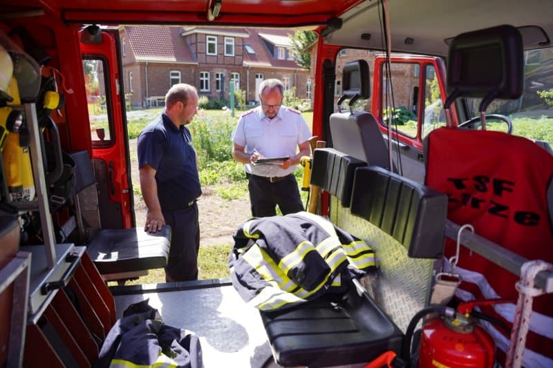 Fahrzeugappell – die Ortsbrandmeister der Bleckeder Ortsfeuerwehren überprüfen die Fahrzeuge: