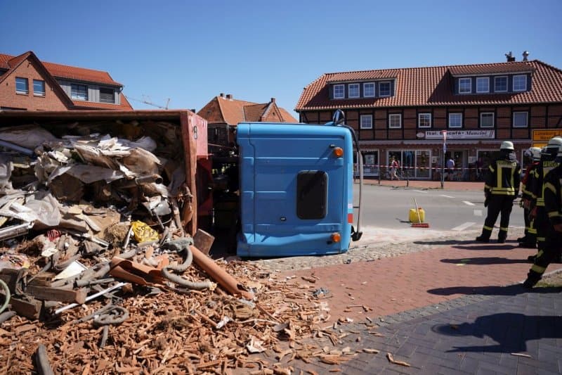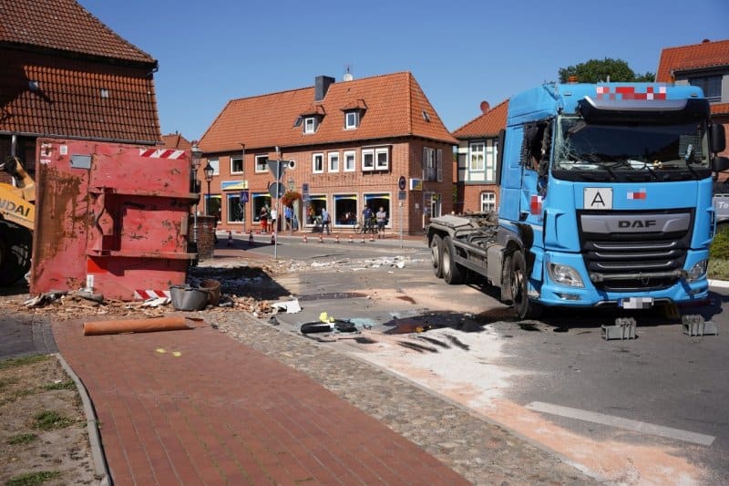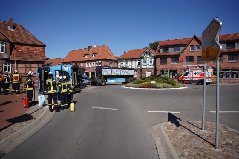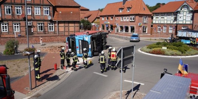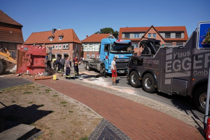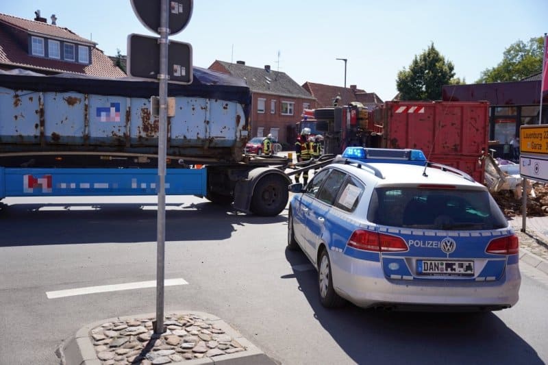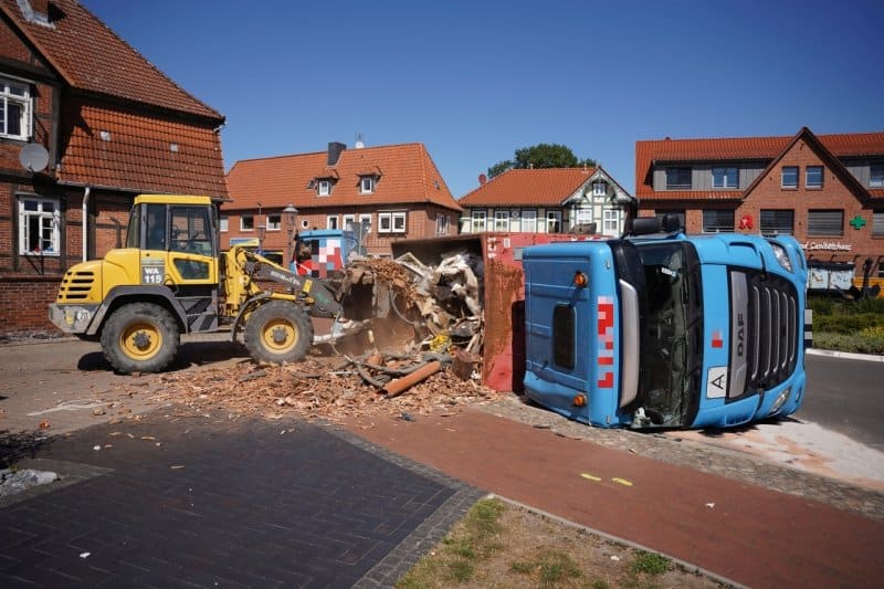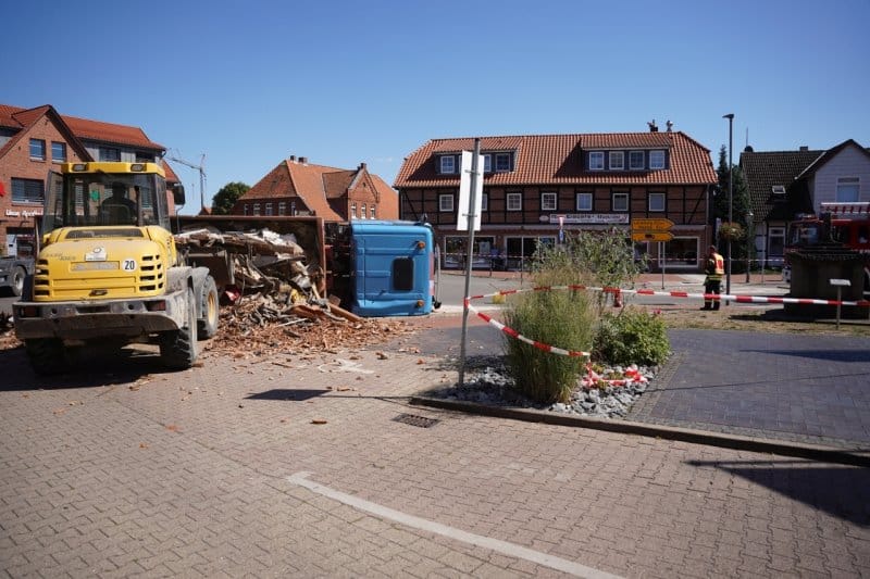 Am Dienstagmittag um kurz nach 13:00 ist am Kreisel in Bleckede ein LKW mit einer Mulde umgekippt.