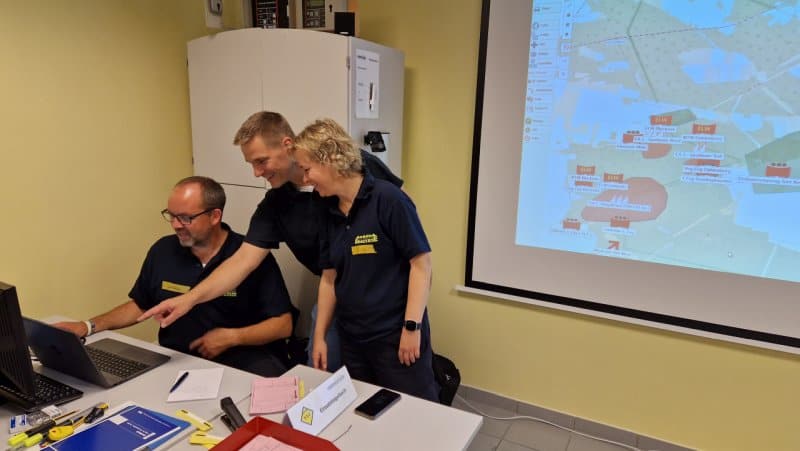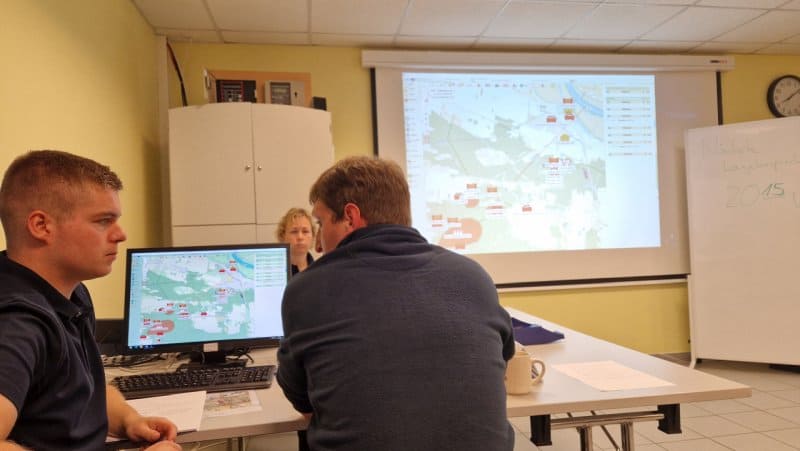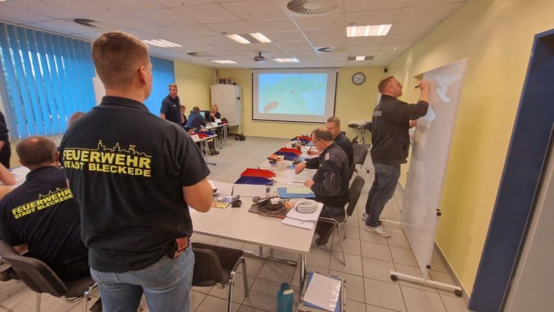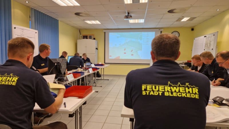 Neben den Übungslagen erklären wir die Arbeit in der Kommunalen Einsatzleitung (KEL). Diese wird in Bleckede von den Feuerwehren der Samtgemeinde Dahlenburg, der Samtgemeinde Ostheide und der Stadt Bleckede besetzt – die Feuerwehr Amt Neuhaus besetzt die KEL in Neuhaus.
