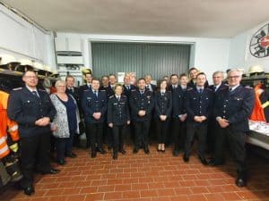 Foto, von links: Stellv. Stadtbrandmeister Falk Bardenhagen, Stellv. Bürgermeisterin Anja Hinners, Ortsbrandmeister Thorsten Rick, Mirko Braun, Maxim Frank, Ortsvorsteher Christian Wendel, Kevin Bagung, Urte Schwaberau, Stefan Schröder, Robert Herda, Friedhelm Sevecke, Nadine B., Sven Schwaberau, Frederic Sevecke, Marten Pachale, Söncke Niebuhr, Falko Lucas, Friedhelm Meyer und Stellv. Ortsbrandmeister Oliver Schmidt