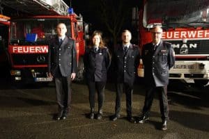 Neuaufnahmen, von links: Ari Wolter aus der Jugendfeuerwehr, Sarah Bockelmann aus der Feuerwehr Wendewisch für den Tagesalarm, Johannes Charkowski und Ortstbrandmeister Lorenz Reimers