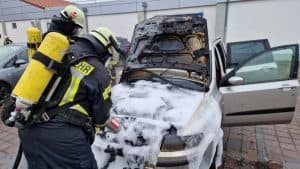 Das Fahrzeug brannte im Motorraum – Einsatzkräfte unter Atemschutz retteten einen Hund aus dem komplett verqualmten PKW.