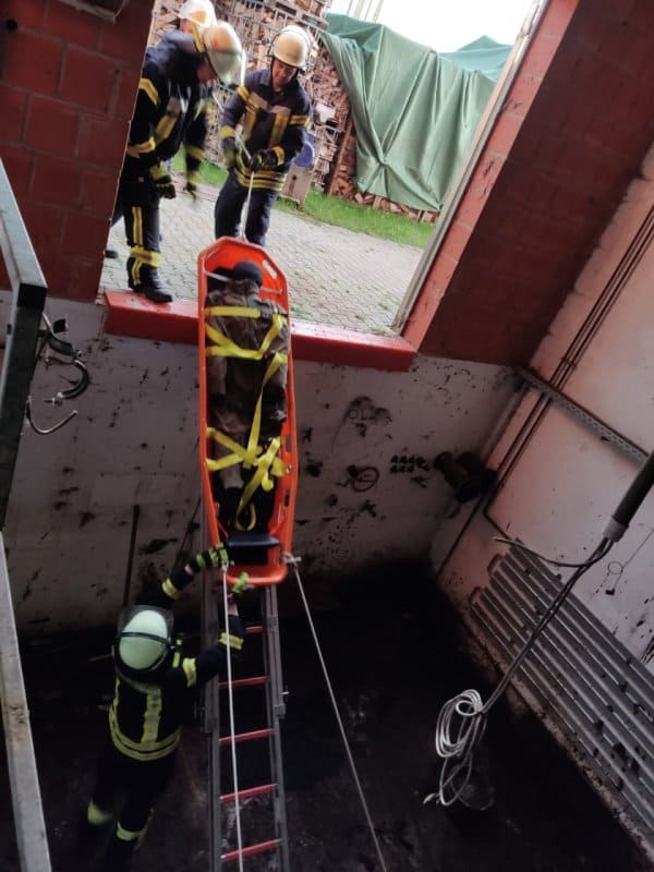 Beim Übungsdienst der Feuerwehr Bleckede steht die Rettung aus Höhen und Tiefen auf dem Dienstplan.