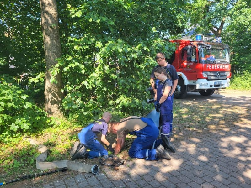 Die Jugendfeuerwehr ist aktuell dabei die Unterflurhydranten zu kontrollieren.