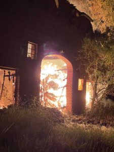 Gebäude und angrenzender Stall in Vollbrand