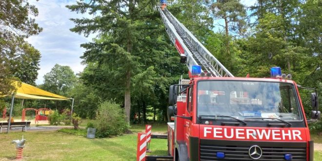 Unterstützung des Bauhofes mit der Drehleiter – gemeinsam die Gefahrenstelle entfernt :-)