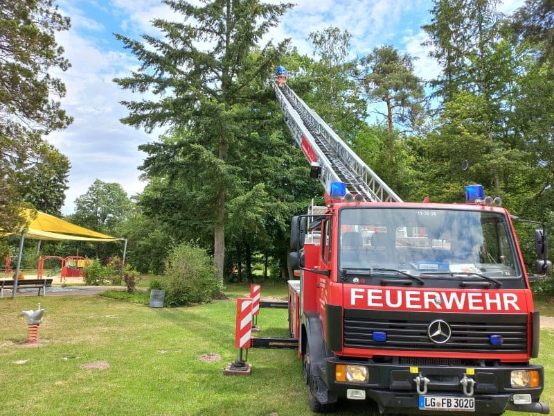 Unterstützung des Bauhofes mit der Drehleiter – gemeinsam die Gefahrenstelle entfernt :-)