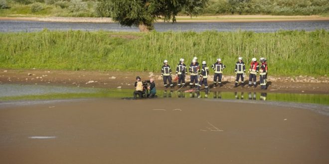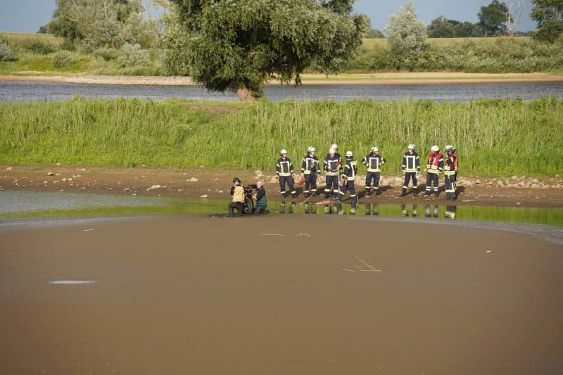 Obwohl dieser Einsatz zum Schmunzeln war, gab es eine reale Gefährdung für den Radfahrer – auch das ist eine Folge des Niedrigwassers der Elbe.