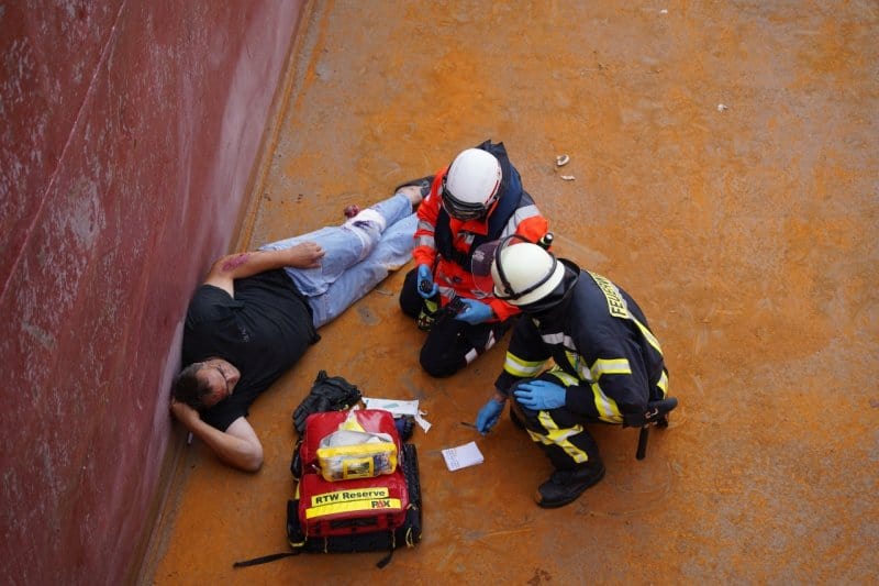 Zugang zu den Patienten im Laderaum schaffen, Atemschutztrupps zur Personenrettung in den Maschinenraum, Rettung der Person im Hafen – alles gleichzeitig und mit hoher Priorität!