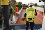 Die nächste Schwierigkeit war die technische Rettung der Patienten vom Binnenschiff an das Ufer: Über tragbare Leitern wurden die Patienten mit der Schleifkorbtrage und viel „Manpower“ zu den Rettungswagen gebracht.Nach Übungsende ein kurzes Fazit: Die herausfordernde Lage wurde gemeinsam professionell abgearbeitet. Feuerwehr und Rettungsdienst mussten aufgrund der Einsatzbedingungen auch mal improvisieren – aber das macht so eine Übung interessant!