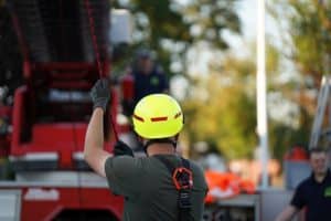 Beim Dachstuhlbrand in Alt Garge am 22. Mai 2023 wurde bereits ein Atemschutzgeräteträger durch den „Gerätesatz Absturzsicherung“ beim Durchbruch durch die Zimmerdecke gehalten.