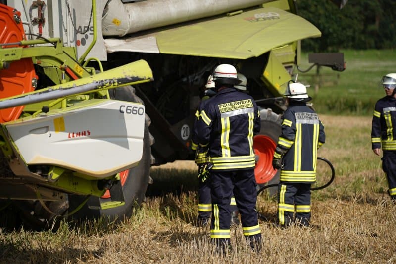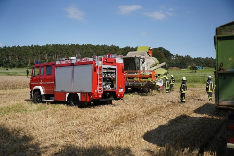 B3 – Brennt Mähdrescher zwischen Ellringen und Köstorf am 21.08.2023