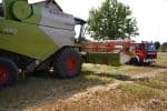 Rauchentwicklung durch einen Schwelbrand im Mähdrescher und das schon erste