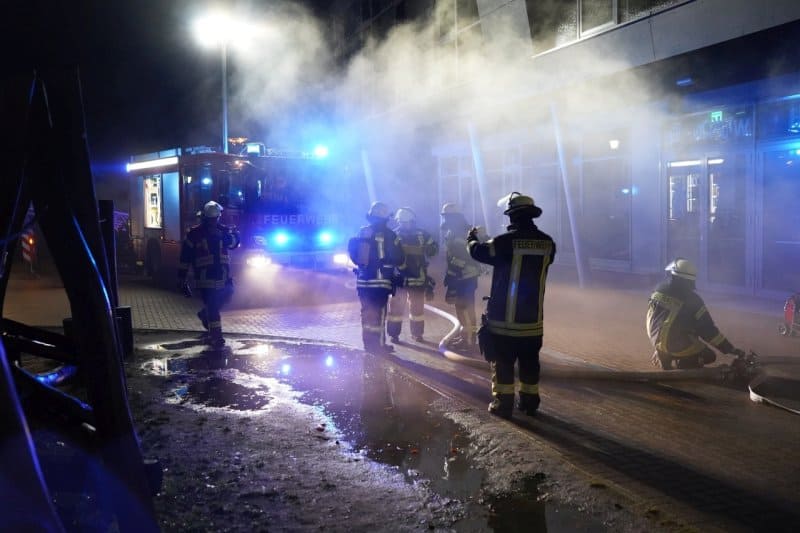 Neben vier Trupps unter Atemschutz wurde eine Wasserversorgung aufgebaut, die Einsatzstelle ausgeleuchtet und das Gebäude belüftet.