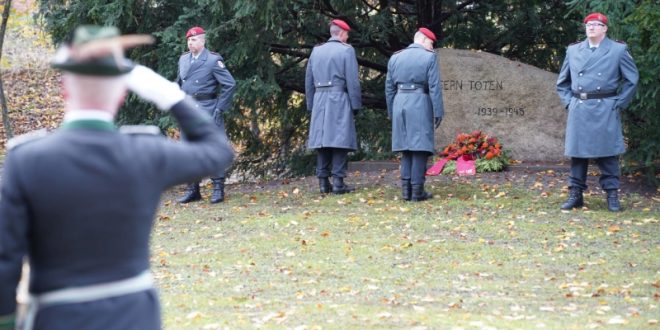 Mit der frisch geschlossenen Patenschaft der Stadt Bleckede mit der 2. Batterie des Artillerielehrbataillons 325 waren erstmalig auch wieder Soldaten dabei. Die Abordnung der Artilleristen legte ebenfalls einen Kranz nieder.