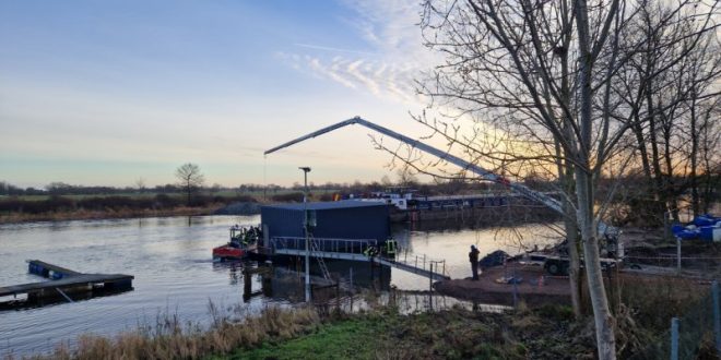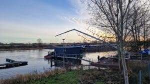 Die Bootswache wurde vom festen Liegeplatz längsseits der „MS Ideal“ geschleppt. Die Bootswache wird dort das Hochwasser verbringen.