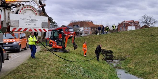 Der Deichseitengraben – insbesondere die Verrohrung unter den Wegen wurde durch Einsatzkräfte kontrolliert.